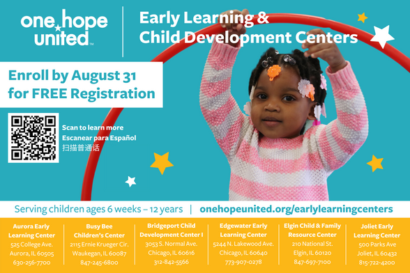 The newly redesigned campaign landing page (onehopeunited.org/earlylearningcenters). Navigate the window as you would on a website.